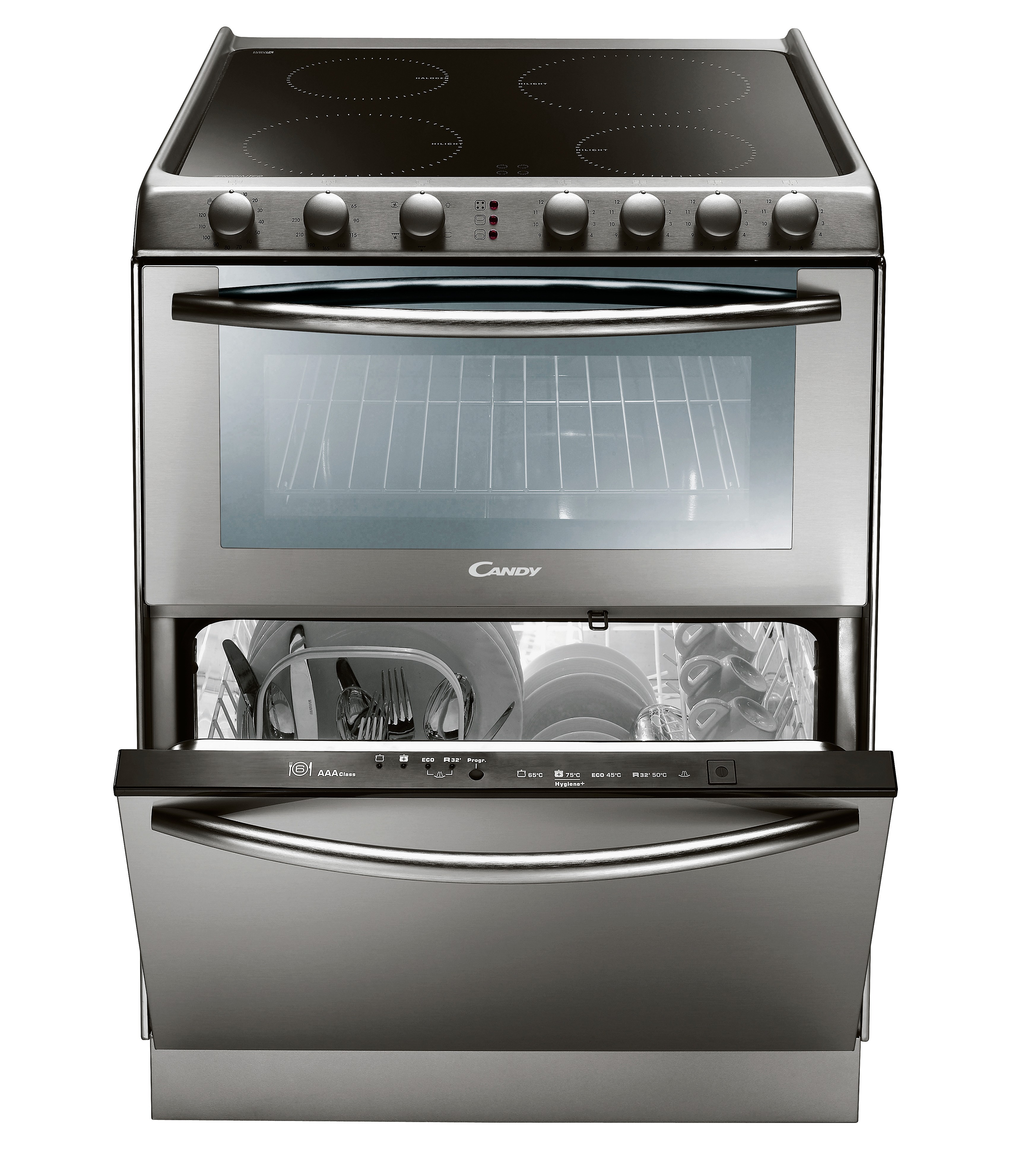 Tässä on ideaa, liesi ja astianpesukone samassa. Candy, 1189 e. Ehkä vähän hankala asento täyttää konetta mutta pieneen keittiöön sopiva.